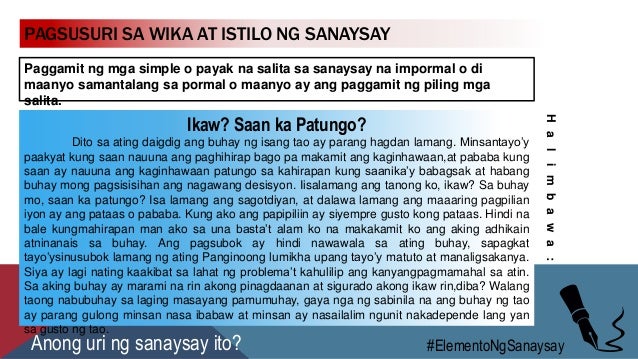 Elemento Ng Sanaysay. Ang mga sumusunod ay ang elemento na bumubuo sa isang epiko. Elemento ng Epiko 2.