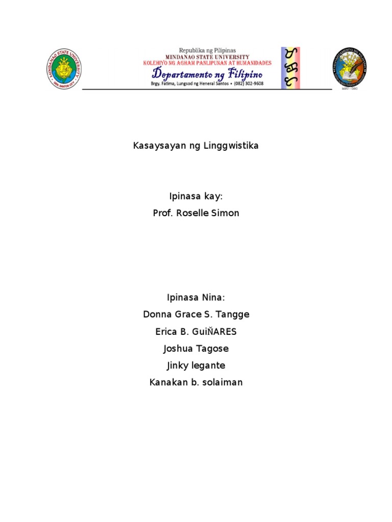 Panimulang Linggwistika Kowd ng Kurso. O2z1qpv and 2 more users found this answer helpful. Kasaysayan ng pilipinas 1.
