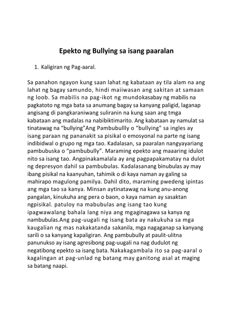 Epekto Ng Bullying Sa Isang Paaralan Pdf