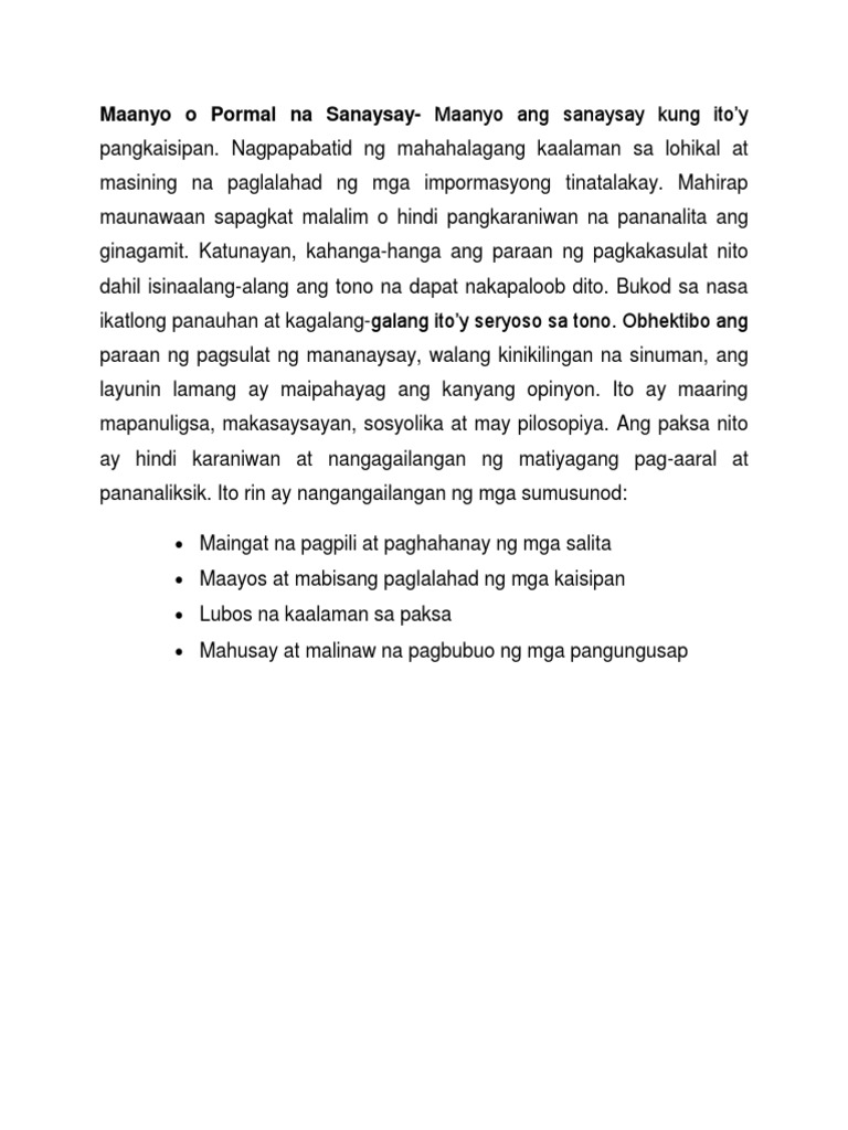 Pormal Ang talakayin nga uri nito ay ang mga seryosong mga pagsa nga nagtataglay ng masusing at masusuri na pananaliksik ng taong sumulatIto ay kadalasang nagbibigay ng impormasyon ukol sa isang tao hayop bagay lugar o pangyayari. Inaasahan namin na makahanap ka ng impormasyon tungkol sa halimbawa ng kritikal na sanaysay dito. Ano ang Sanaysay.